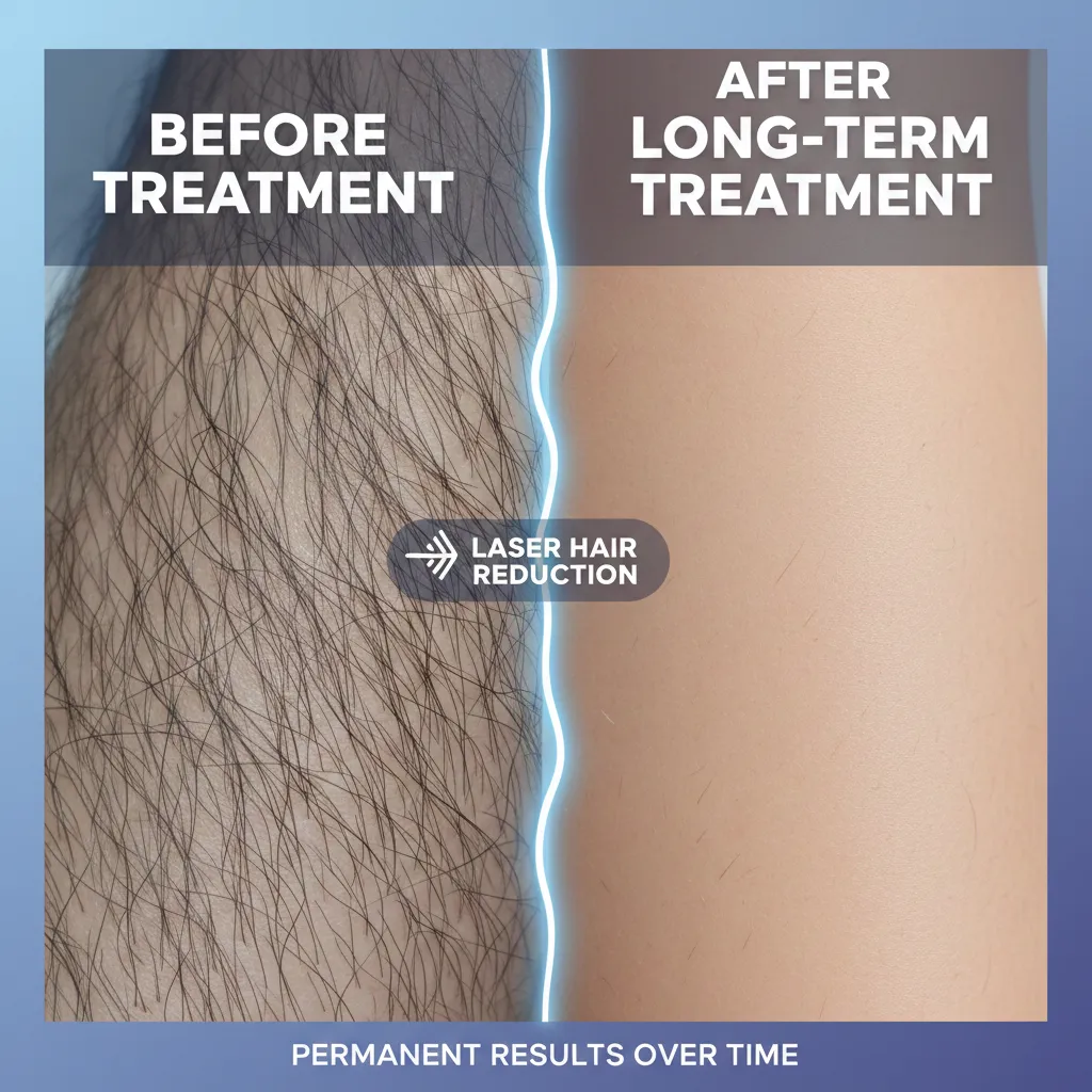 Lasers target hair follicles, leading to permanent hair loss (around 70-90% reduction) after a series of treatments, making hair grow back finer and less dense, if at all - and visiable results in as little as one session.