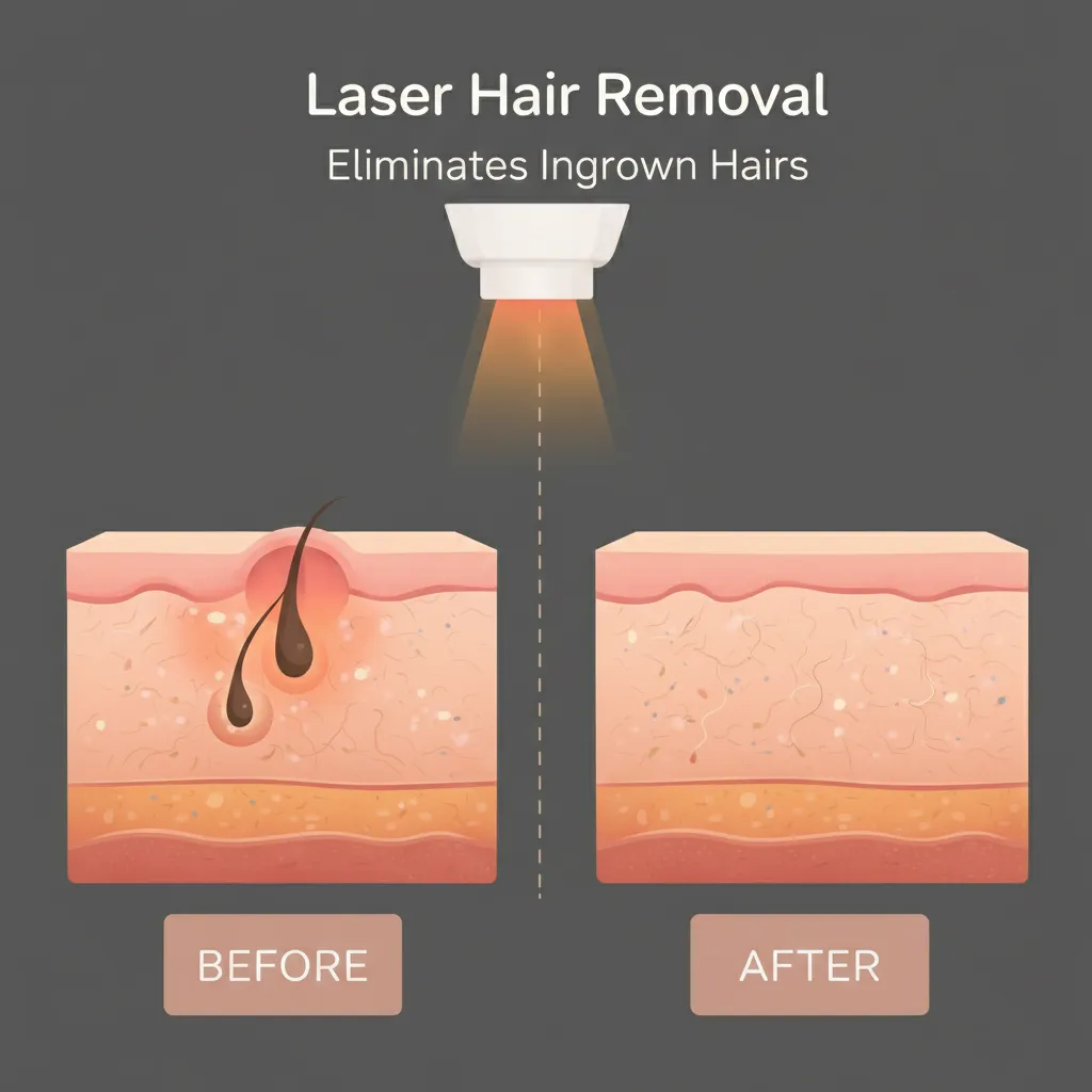 By destroying the hair follicle, laser removal stops hair from growing back into the skin, preventing painful razor burn, bumps, and inflammation often caused by shaving or waxing.